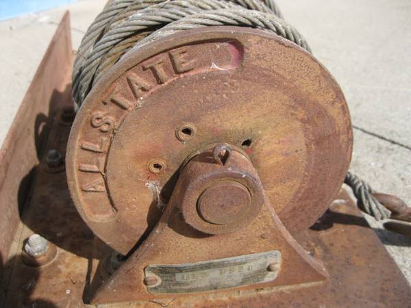 “This is a very nice classic vintage (1940s) fully working allstate winch sold by Sears, it was originally installed in a 1947 CJ2A but later transferred to a 1956 DJ3A, the long metal base is 33″ long, the metal plate where the mechanism sits is 15″ long, the mechanism alone is 13″ long, the cable is 3/8 in diameter”