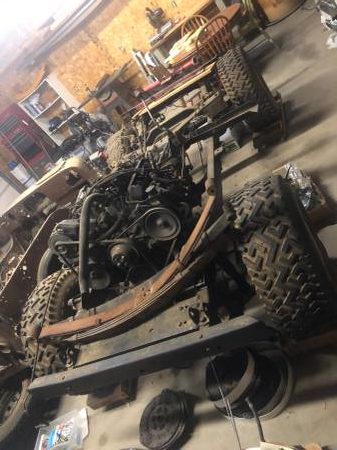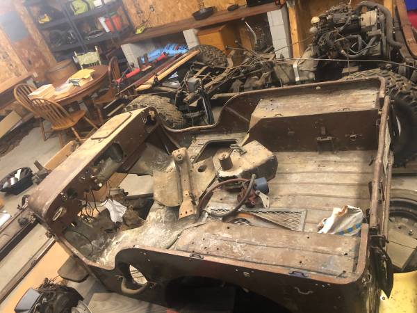 “Parts and assembly to a 1951 Willys Jeep. Body and chassis comes with donor Jeep and more. V-6 engine, Manuals, and can include car hauler. Inherited the project as part of a recent home sale and looking to sell to a Jeep enthusiast that would appreciate the journey of taking this baby back to its prime. Buyer will need to transport and remove all related parts. OBO”
