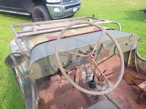 “Willy’s 1944 MB Jeep. Needs total restoration. Does not run. Comes with four Combat rims not the wheels on it in the photos. Rare variation of the Jeep one of the few made for beach landings. Originally equipped with T-1 air compressor oversized 750-16 tires, special spare tire mount and foot still has special instruction plaque on dash for tire pressure. Sold as is. Bill of sale only”