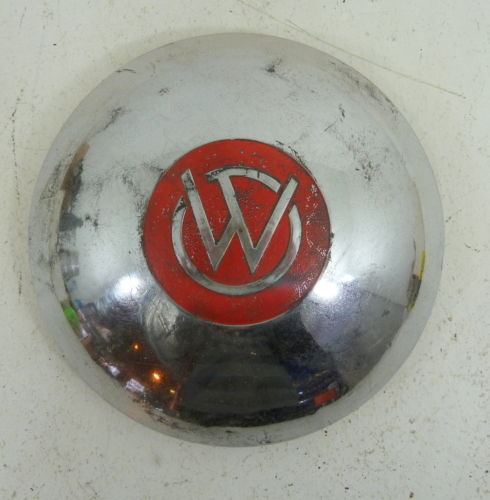 The larger hubcaps produced for the Willys Station Sedan and the Jeepster In 1948 were a two piece design, a plain moon type cap with a stainless overlay that had the W-O design in the center. This center portion was raised and was used on Jeepsters and Willys 2wd wagons and panel deliveries through 1953. In 1954, the design changed to a one piece cap with the center portion being “ depressed slightly and the color combination altered. The reproduction caps available to us today are based on the later 54-63 style. So we have the “innies” from 54 and later and the “outies” from 1948 -53.