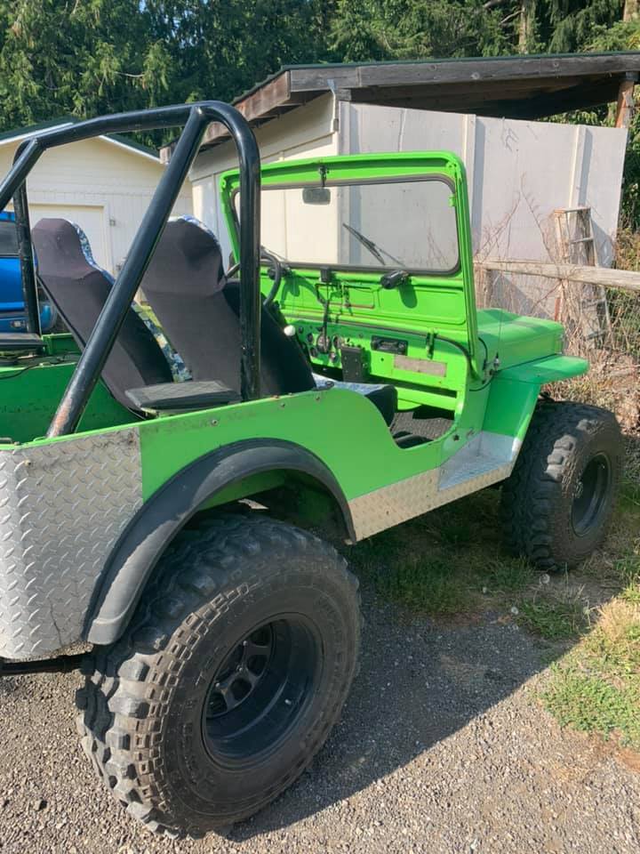 “Thinking about selling my 1951 Willy’s, it has a 151 iron duke 4 cylinder Chevy engine with a 3 speed manual, power steering and a Chevy tilt wheel, 33×13.5 R15 TSL boggers that are almost, new shocks, a 9,000 lb winch, comes with soft doors and soft top, it needs some minor things here and there, but it runs and drives, looking to get 5,500”