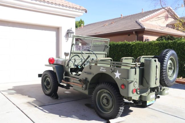 “1943 Ford GPW. This jeep was completely restored (by my Grandfather), frame off, down to every nut and bolt in the 1990s and has been in the garage ever since. converter to 12v. Has a canvas top. Has some minor blemishes and a few minor spots of rust that has occurred post resort. The jeep was last driven about 2 years ago, without any driving issues or mechanical issues. The jeep has about 25 miles in the last 7 years, zero in the last 2 years. The jeep currently doesn’t want to start (engine cranks), not sure if its just gas or other. feel free to email or text any questions and i will do my best to answer.”