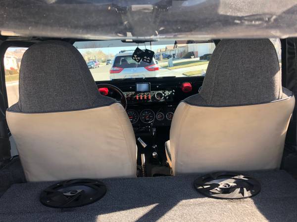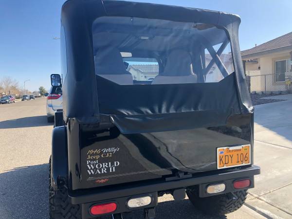 “1946 Willys Jeep, 350 Chevy crate Motor – over 400 horsepower, 4 speed, 4 wheel Drive, paid $20,000 for Jeep in 2013 and have invested over $55,000, too much to list”