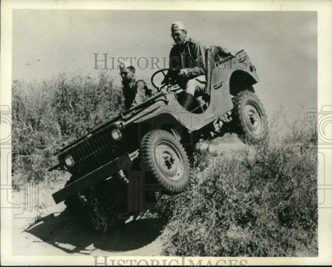 “1941 Press Photo Army lieutenants give new jeeps test drive at Fort Bliss, Texas. This is an original press photo. Fort Bliss, Texas. Under modern conditions of mechanized war, the once lumbering and awkward tank has emerged as a machine of many types and variations, from small steel speedsters to the huge 80-ton land battleships which flatten trees and grind buildings to powder. These have created new problems in defense, and Uncle Sam’s new army is not going to be caught napping in this department.