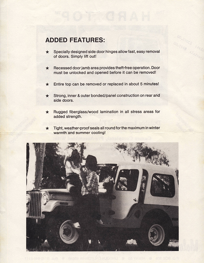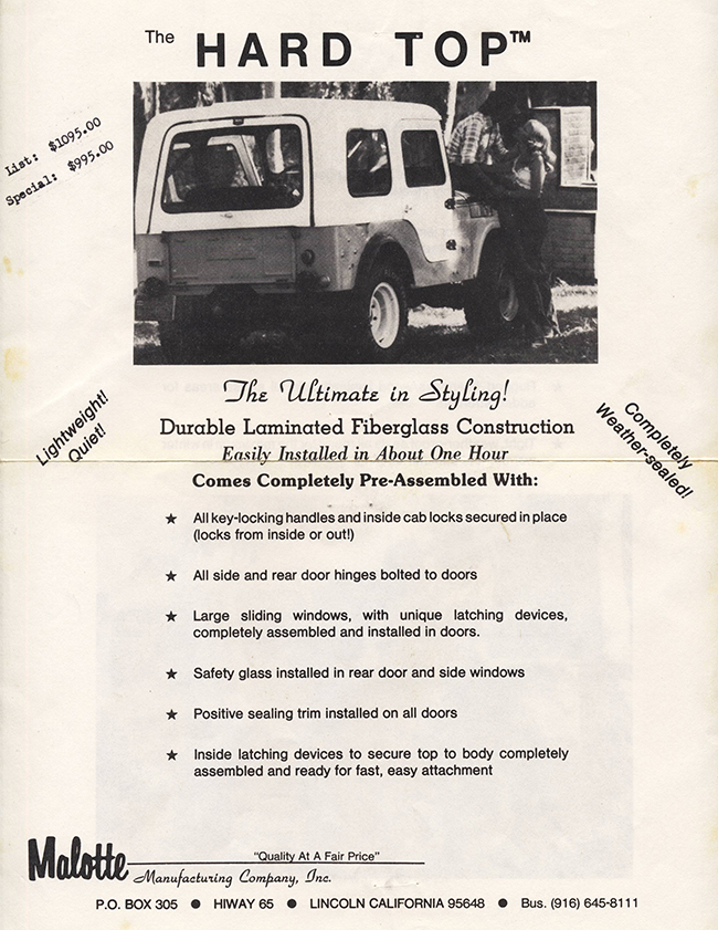 Thanks for the note. I’ve been doing my best to try and preserve some of aftermarket jeep stuff, among other things. Do you have any background you can share, such as how and when he got involved in making fiberglass bodies? Have any early brochures of jeep bodies? (sometimes the old brochures can help identify bodies folks find on jeeps.