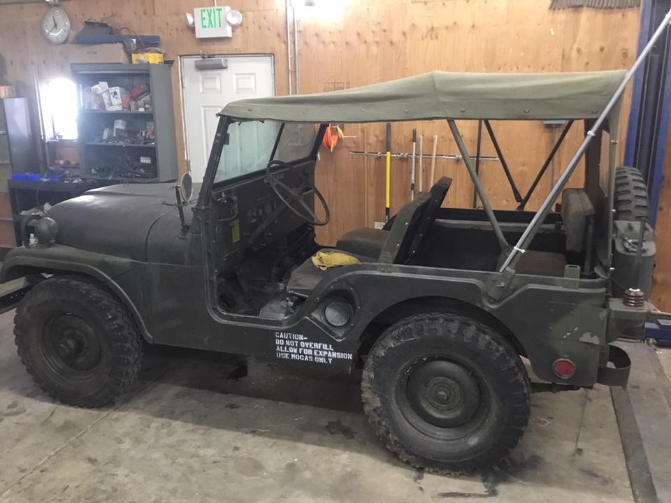 “1953 Military Jeep M38A1. Selling my military jeep. Lots of work done, including, brakes, new radiator, new top, batteries, and much more.. This jeep has no rust!!. Body in great shape. A great survivor. Selling to fund another project. Has original 24 volt electrical system. Comes with Overdrive transmission/PTO. Also has side canvas doors. (Full winter top). Also has factory hard top, but do not have hard top doors.”