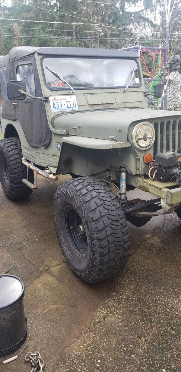 This modified CJ-3A has a variety of updates. It’s got reversed springs in the front and 4-link suspension in the rear. The seller is a long time jeep guy.