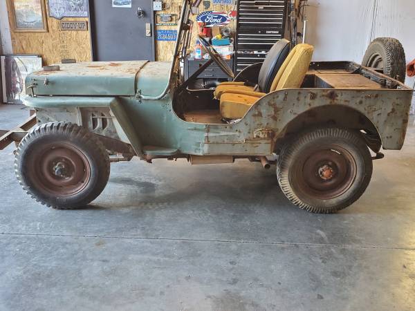 “Selling my 1942 GPW. This is a script model GPW. It starts runs and drives but needs to be gone through. The electrical is still the 6 volt system and it is operational. The rear inner fenders were cut to move seats back and fuel tank was relocated to rear. The engine is a willys engine and the frame stamping shows as