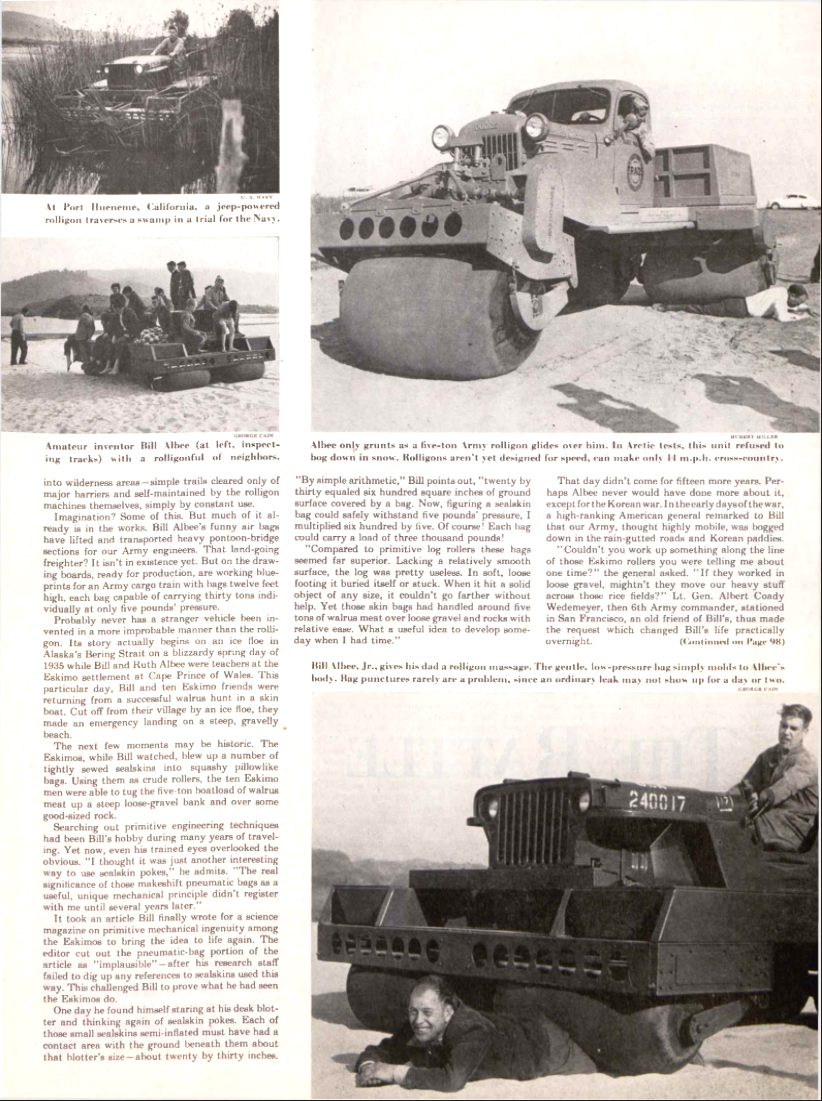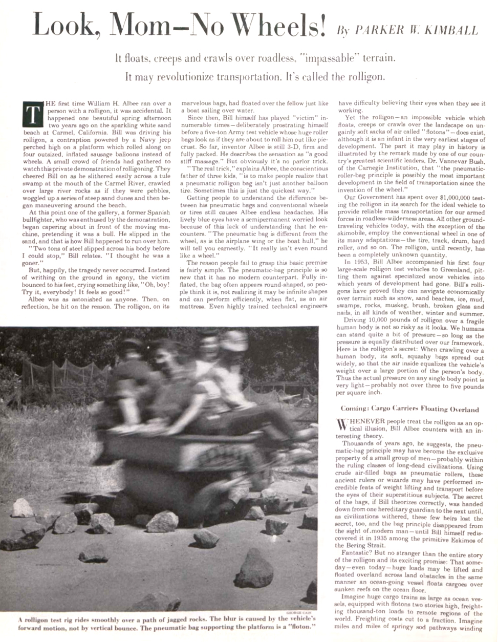 This June 04, 1955, article about the Rolligon goes into great depth about the history of the invention. You can see more pics here. The pages below are much clearer once you click on them.