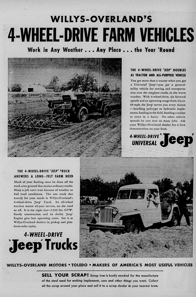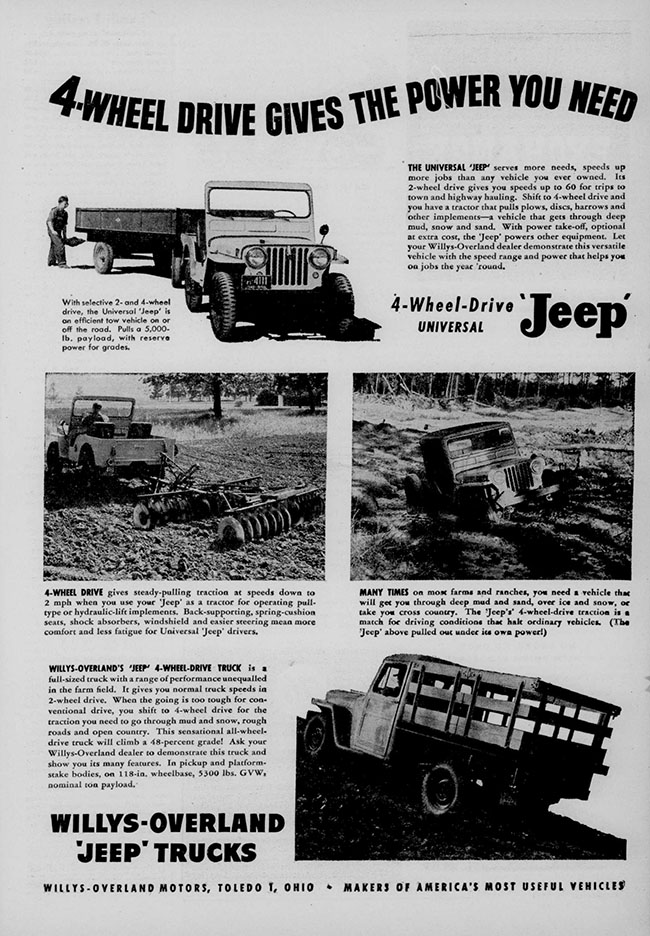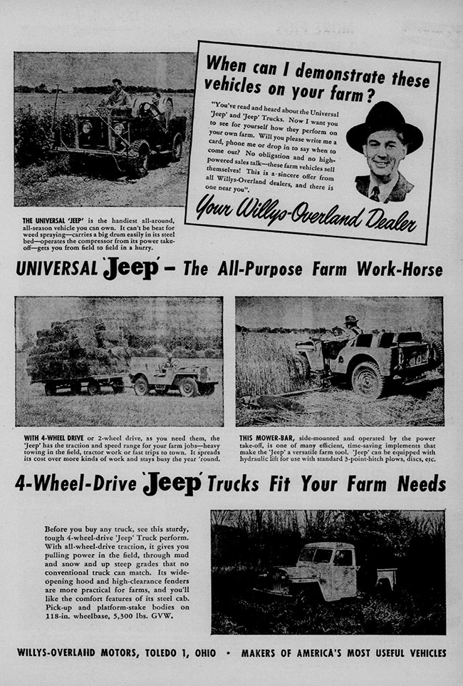 In 1949, Willys-Overland halved the number of ads in the Montana Farmer-Stockman from 1948’s eight ads to only four. This may underscore the financial issues Willys-Overland was facing.