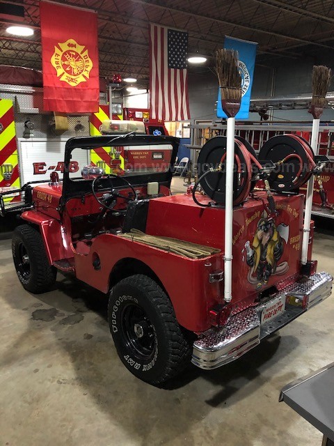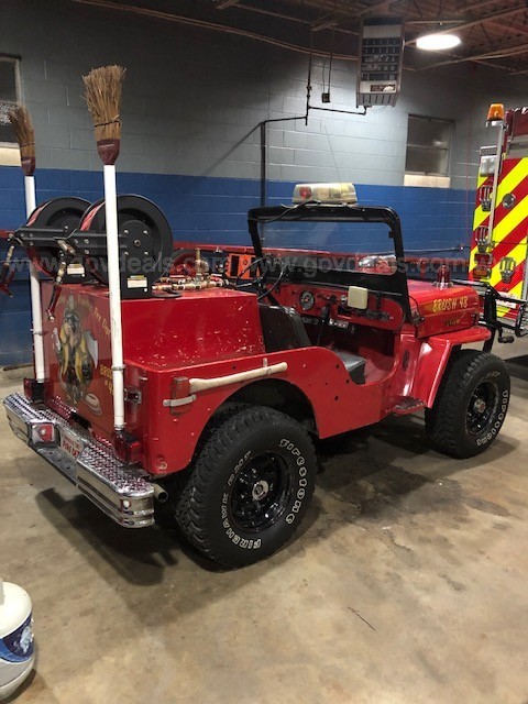 “1963 Willy’s Jeep CJ3-B Brush Truck. This truck is a one owner and has served as a grass fighter ever since new. Jeep starts and runs perfectly. Emergency lights and siren will stay. The radio will be county removed. 50 gallon water tank. (2) 3/4″ booster lines. Winch works. 4×4 works. Tires in great shape. Mileage is believed to be accurate. Vehicle serviced regularly.”