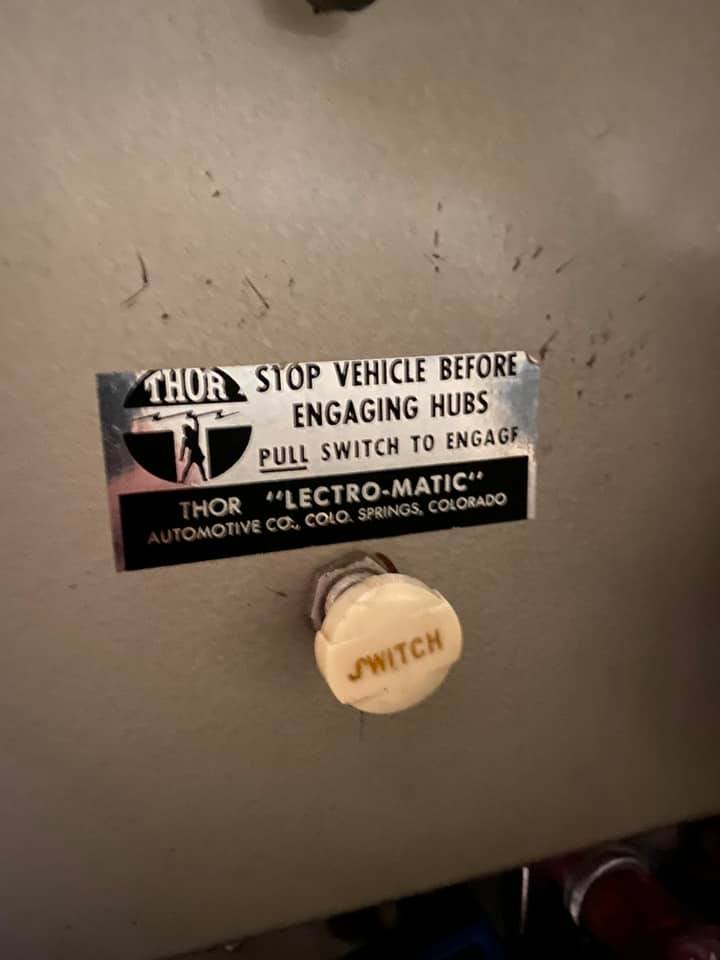 This includes a working set of Thor Electronic Hubs (and the first pic I’ve seen of the switch to engage the hubs). These are the “Lectro-Matic” version of the hubs (there was also an automatic version). Dan documented a set of the “Lectro-Matric” hubs here.