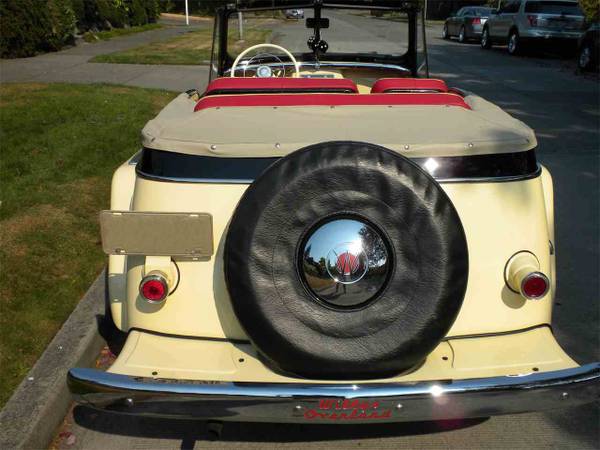 “Phaeton VJ-3. This was an open air convertible with soft top and removable side curtains. It is one of only 2960 built and is powered by a rebuit L-head 4 cylinder 3 speed engine with overdrive. It has been restored to its original look. The tan convertible top is in excellent condition. The vehicle runs and drives fantastic and it is in outstanding condition.”