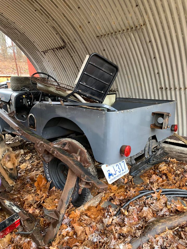 (04/03/2020) This has an M-38 windshield, a CJ-2A grille, and a fiberglass body/front clip. It’s a project.