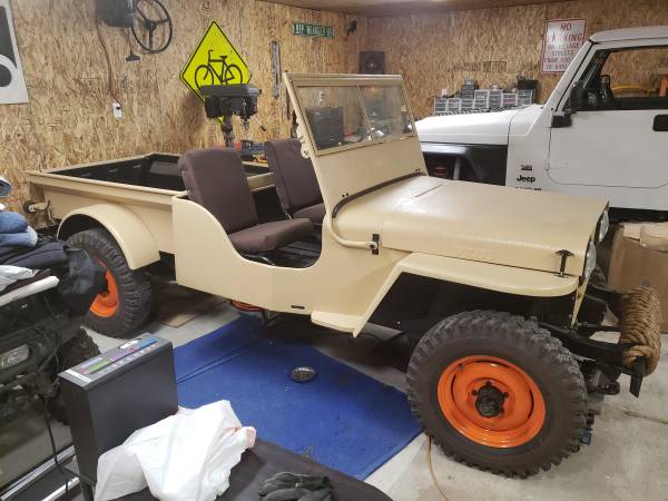 (01/04/2020) This modified CJ-2A with the truck-like addition is road ready. The body appears to have some kind of body liner on it.
