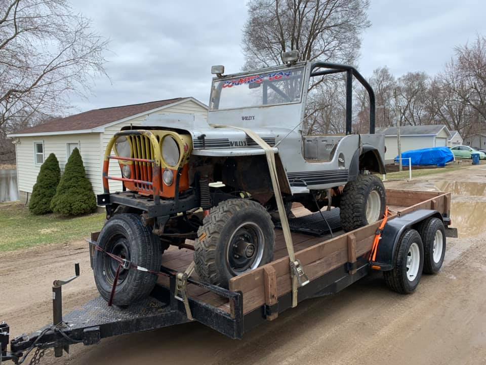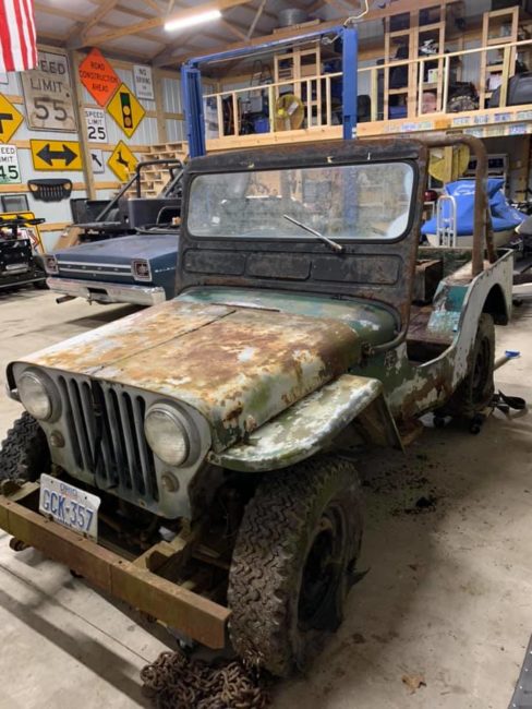 “Project, Willis body sitting on a mid 70s CJ5 frame with title. Set up for Ford 8 cylinder with bell housing and adapt or plate. Have trans/transfer case etc. Just need engine, brakes and some other minor stuff to be a decent trail rig or dune unit. Last pic is a 1947 parts Willis I also have for sale “no title””