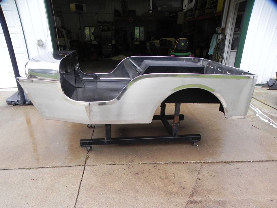 The hand fabricated main body tub, which utilizes stainless steel for visible sheet metal and galvanized for floor and firewall.