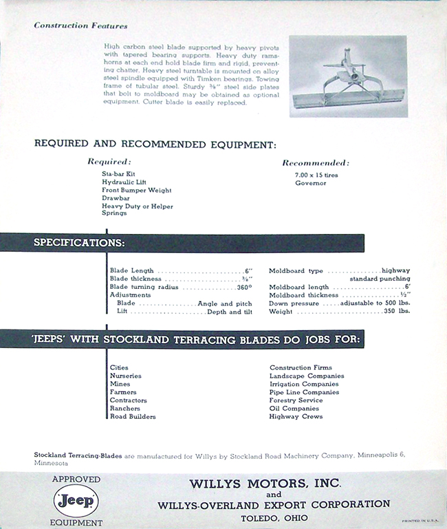 Page from the 1951 ‘Jeep’ brochure with the terracing blade: