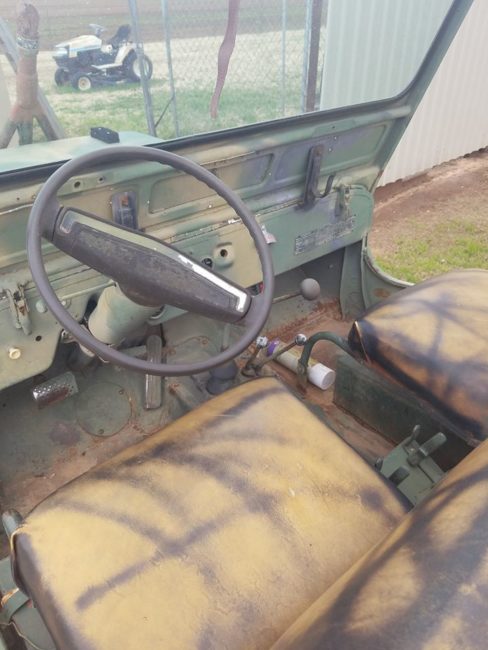 (01/15/2019) This appears to have M-38 like tool indents on the passenger side, but a CJ parking brake and no dash glove box. Maybe it’s a replacement tub??