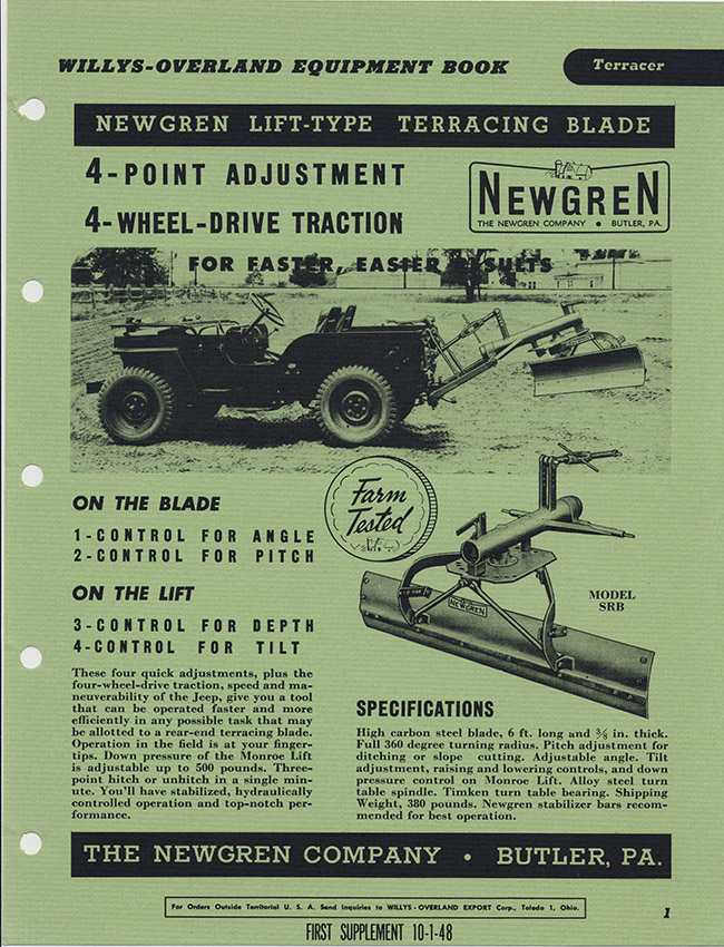 Page from the 1951 ‘Jeep’ brochure with the terracing blade: