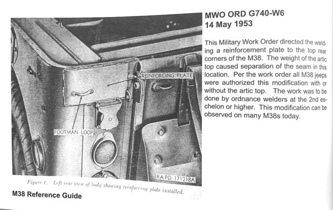 Tom pointed out something I didn’t know. Some M-38s have patches along the top of the rear of the M-38 body over both rear vertical seams. This was a technical recommendation was the result of a problem caused by the weight of arctic tops, leading to the separation of the rear body seams.