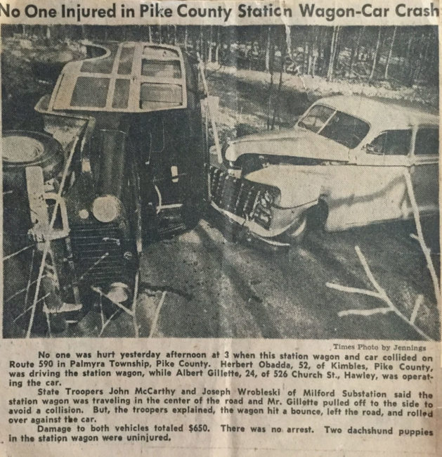 I’m not sure where I found this newspaper clipping, but Herbert Obadda had a bad day. No dachshund puppies were injured as a result!