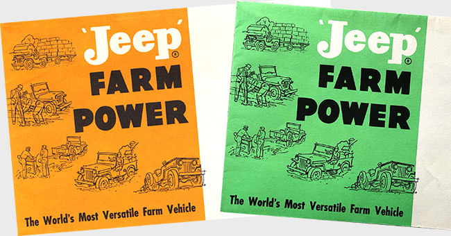UPDATE: For a few years now I’ve noticed that there were two versions of the 1954 Form KW-1706 titled ‘Jeep’ FARM POWER, one having an orange theme and one have a green theme. Since I owned an orange copy, I wasn’t in a hurry to get a green copy. Still, I was curious about why the newly formed Kaiser Willys Marking Team would publish a brochure, with the same form number, in two different colors, as that wasn’t a customary practice.