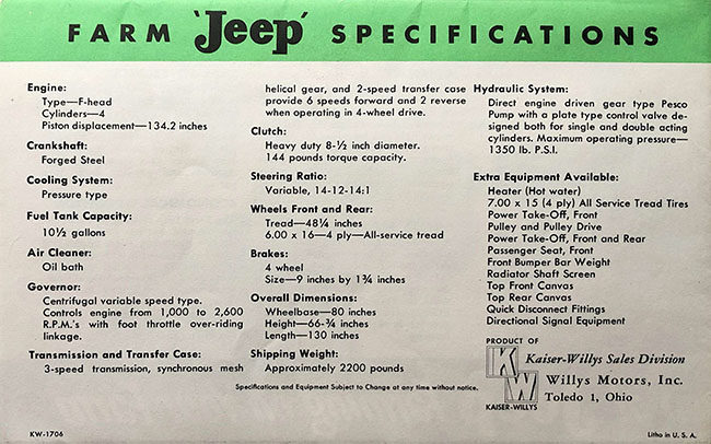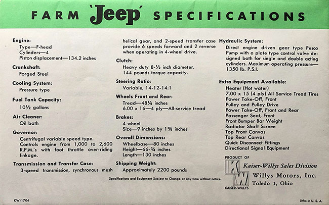 Dave…….really interesting discovery. It if very logical that Willys would want the latest F head engine information in the updated brochure. If you were appealing to the farm buyer, the Nebraska test is the gold standard for all motorized agricultural equipment. Farmers were well-schooled in using that to make purchase decisions.