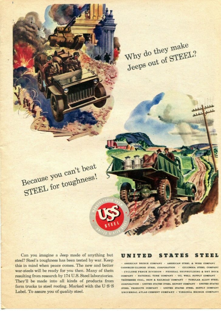 This ad from United States Steel promotes the toughness of steel. Unclear where this ad was published.