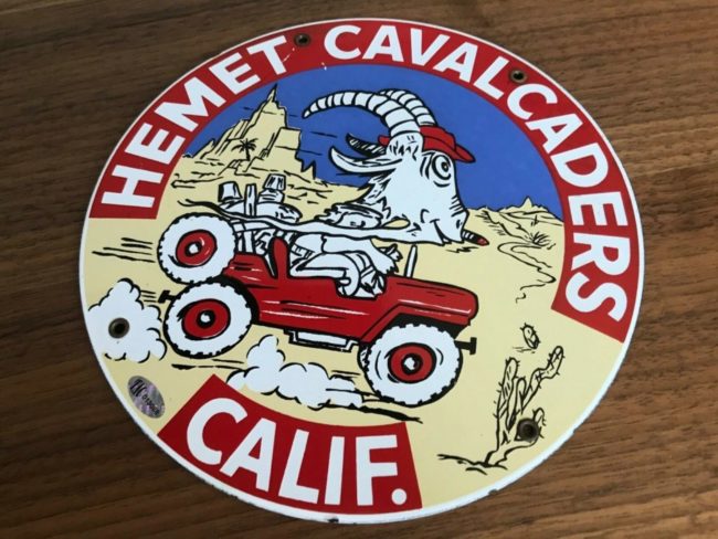 “Old School, Hemet/San Jacinto Valley – Jeep Cub sign. “Hemet California Cavalcaders.’ – 1940s – The Cavalcaders, were one of the FIRST 4×4 Clubs in the USA! …An ultra-rare item.