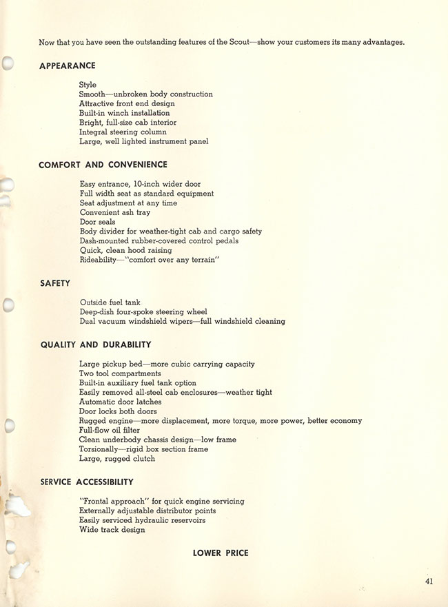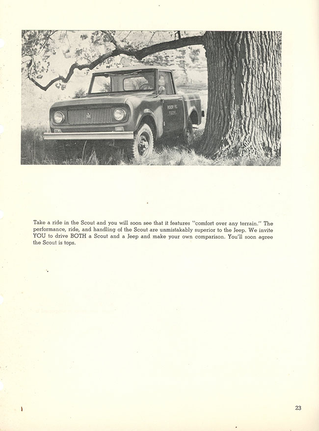 I read this with great interest. My dad was a fleet salesman for IH in the 50s and 60s and my first ride in a Scout was in 1960 in the back of a half-cab on the Southern California beaches with the adults up front. My dad always touted the Scout over Jeeps and Broncos and I bet he was informed by this gem of a report.