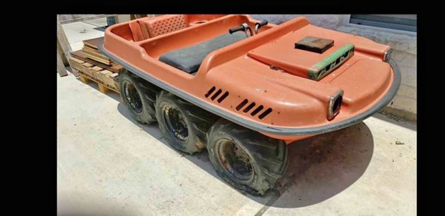 “Argo amphibious 6 six wheeler complete motor trans all linkage totally complete purchased with intent of restoring needs battery tires and complete lubrication of mechanical systems also have a dune buggy”