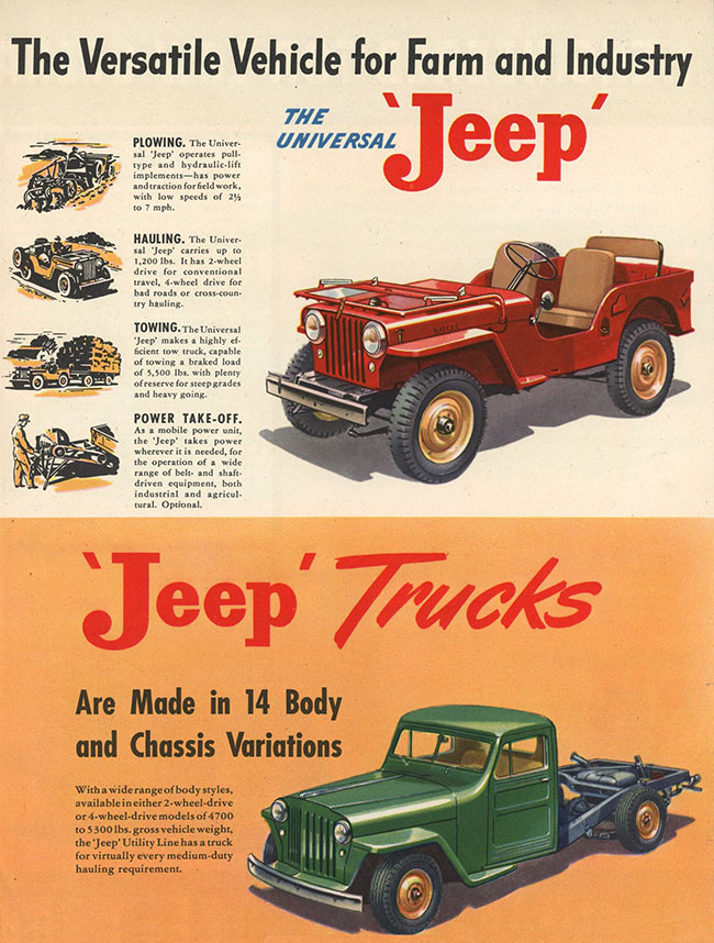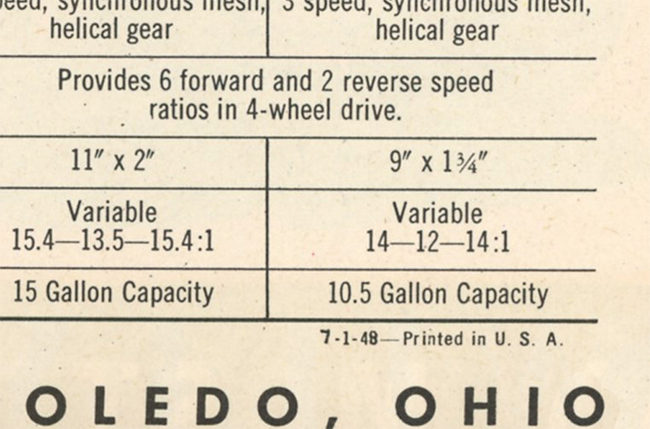 The problem I have with this brochure is that it doesn’t seem very clear on what constitutes the “five” truck lines. Are the wagons and jeeps considered trucks for the purposes of this brochure? Page 3 of the brochure suggests that could be the case. On the other hand, there’s no Universal ‘Jeep’ shown within the tri-fold main portion of the brochure (though a Universal jeep lands on the back of the brochure).