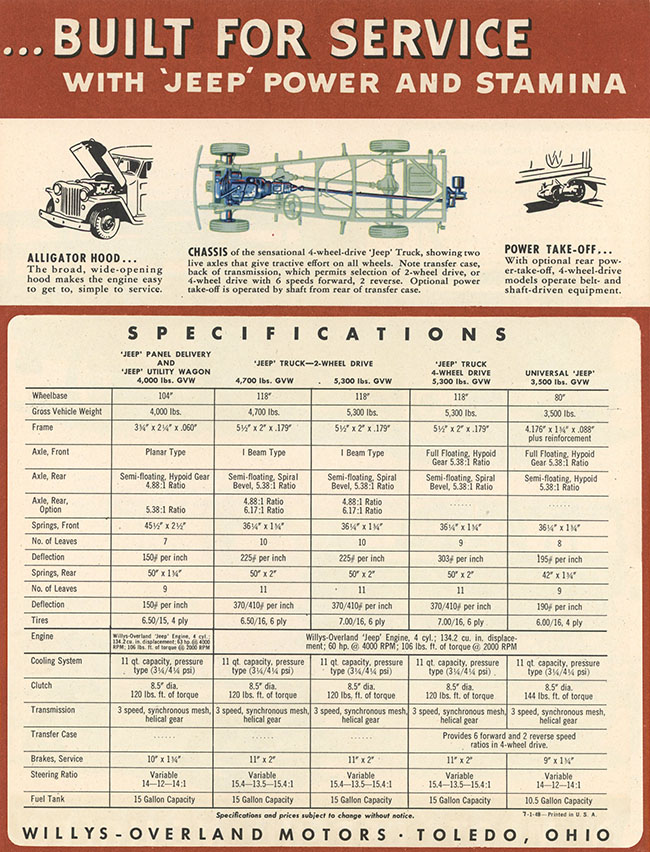This August 1, 1948, brochure extolls the five lines of trucks produced by Willys-Overland. This is one of the earliest Truck brochures, if not the earliest?