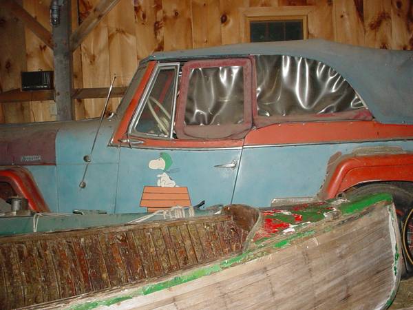 Very interesting artwork on this Jeepster. My 1960 Surrey has Daffy Duck in a sailor suit on each side of the body. The owner who had it before me had it painted on. He also had a orange CJ 3A with a cartoon bear on it. He owned Pioneer Jeep Garage in Peabody, MA. He also had a Maverick Station wagon with a cartoon figure painted on it. Since Amherst, NH is not very far away, I am wondering if this Jeepster ever visited Pioneer Jeep Garage or was ever owned by that Garage. Would be cool to find out if it was, and the cartoons were painted by the same artist.