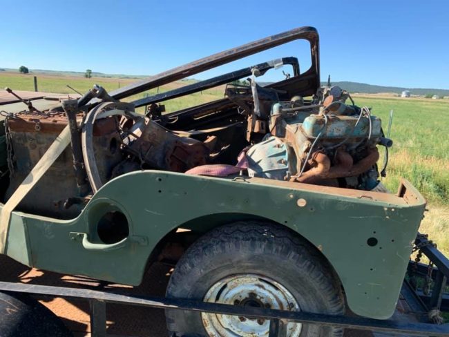 Not sure of year but willys M 38 tub with left fender, L head 134 motor with starter and gen, trans, radiator, 2 windshields one I have glass and rubber, rolling chassis with good brakes excellent under carriage,