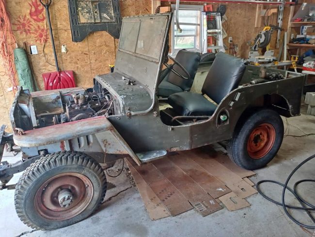 “46 Willys Jeep cj2a project very solid bones does roll engine rolls over complete minimum rust contact Brian at. nine 8 mine five 22 0 8 33.”