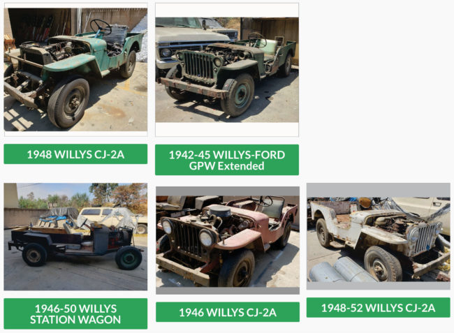 The links to posts below show jeeps grouped by models, condition, and other ways. Some of these jeeps are for sale and others have been sold. If you are unsure whether a vehicle is still for sale or not, email me at d [at] ewillys.com for more info.