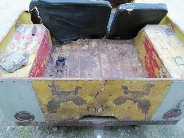 This particular DJ-3A has a number of stock parts, such as the windshield, which appears in good shape, and the Gauze wire filter, which is a hard to find item. The gas linkage and carb are unique to the DJ-3A and are hard items to find. Unfortunately, the underside of the body is rough (perhaps the floor is replaceable).