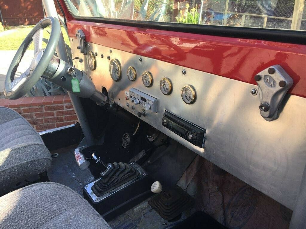 “1956 Jeep CJ6, full custom drive train, chevy 350, TH350 automatic transmission. Power Steering, new fuel system, slap shifter, custom restored dashboard, dual exhaust. 20 k paint and body. Custom seats…1200 in tires, sound system, roll cage…Let summertime fun begin.”