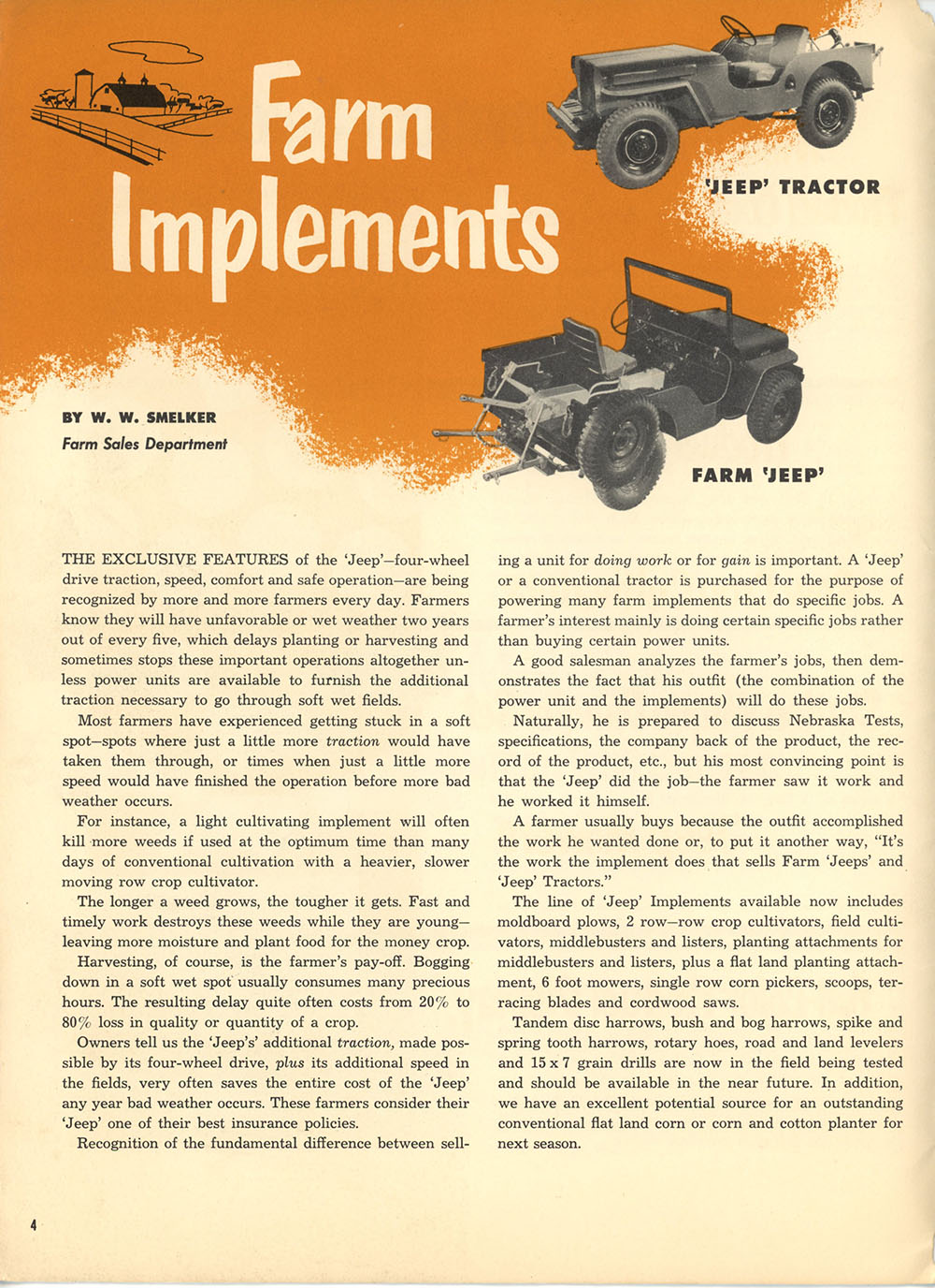 This June 1951 Salesbuilder Magazine was volume 3, number 6. This issue includes a three page look at the Farm Jeep and Jeep Tractor vehicles and the Jeep-branded farm equipment. A large number of 1951 wagon-related advertising pieces are shown on the first few pages.