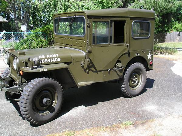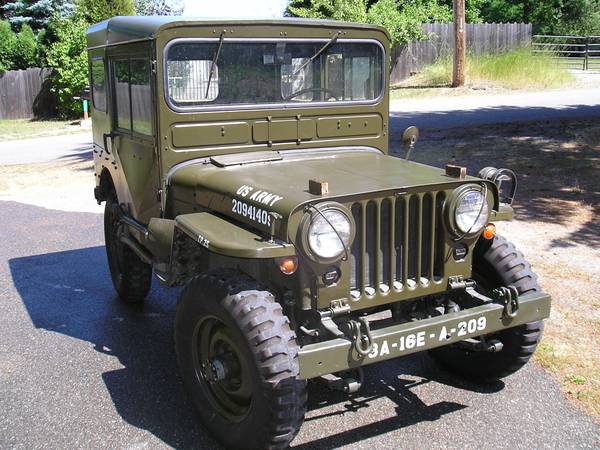 “For sale 1952 restored M38 Military Jeep. 24 Volt electrical system. Military signal lights, Military Aluminum top. Engine, transmissions, and differentials rebuilt. Hot water heater. Frame, body and top painted Army green. excellent condition.”