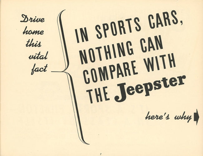 4 Comments on “1949 Jeepster Sales Tool Brochure for the Sales Force