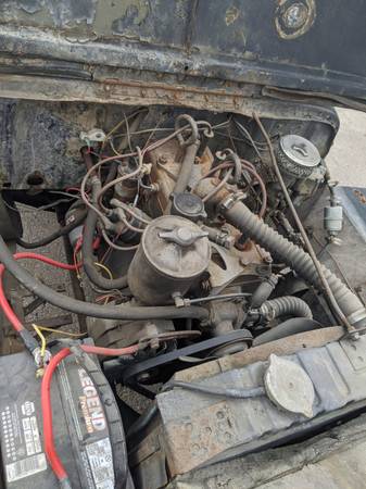 “1952 Willy’s M-38 for sale. It has a 3 speed with a high-low transfer case and a flathead 4 engine. I’ve had it for about 3 years and haven’t driven it much. I actually used it to plow snow a few times. It’s in rough shape, but wouldn’t take too much to make it nice. Even when not running for over a year, it fires up right away. The engine needs some tuning, but I think it’d run well with some TLC.”