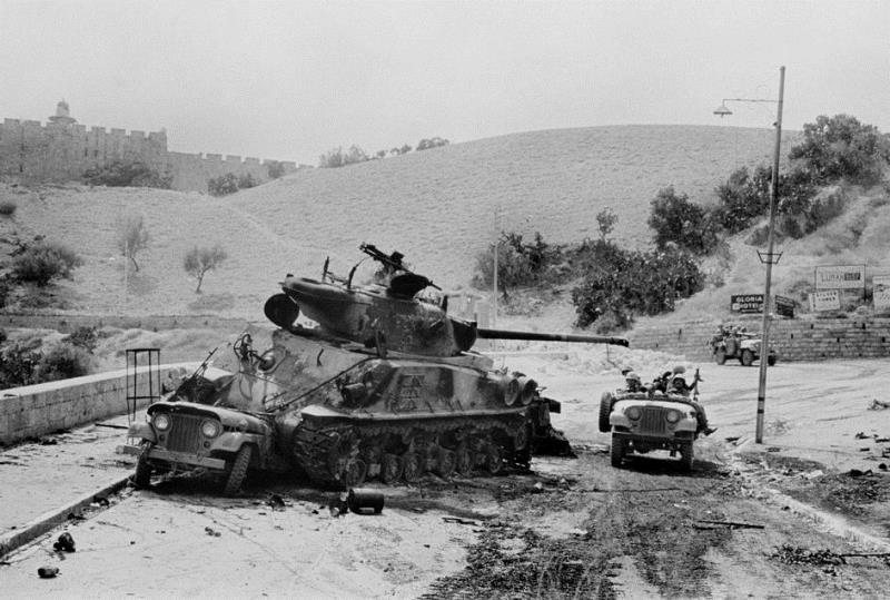 Quora.com indicates the tank is an M-50 Sherman that was damaged during fighting along the West Bank during 1967. I had no idea running over an M-38A1 could knock out a tank like that! (my poor attempt at humor…).