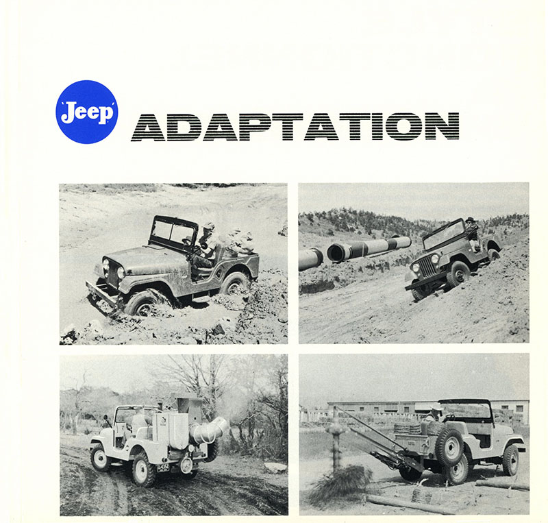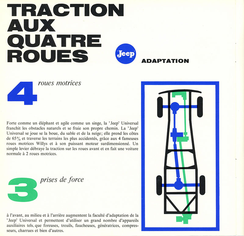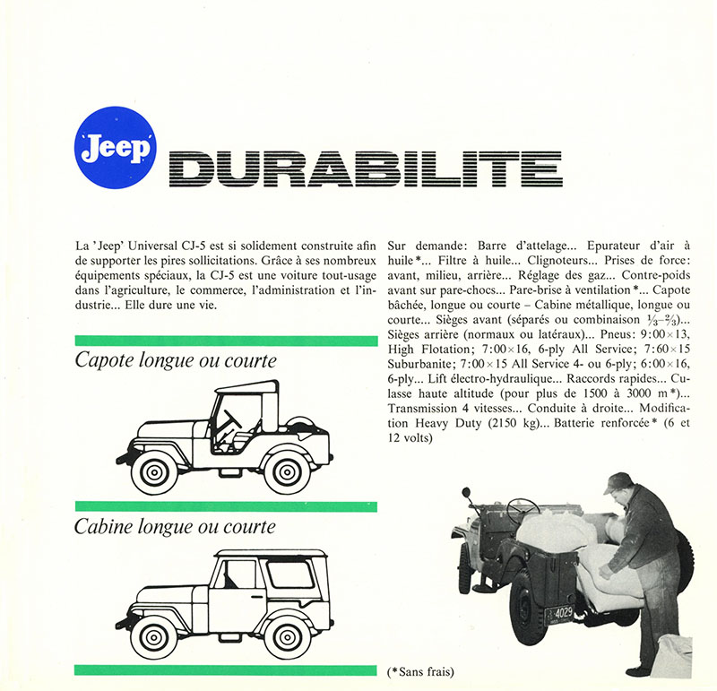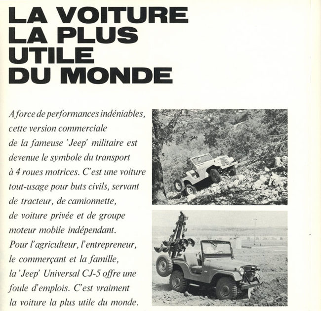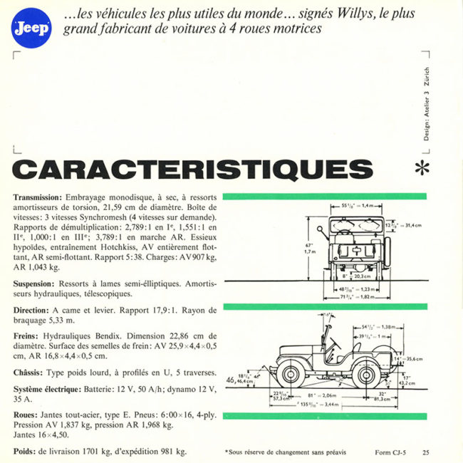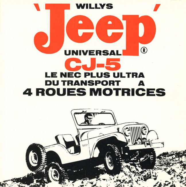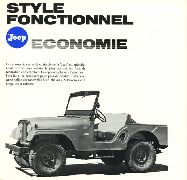 There’s not specific year printed on this CJ-5 brochure out of Switzerland. I’m guessing circa 1958 given the blue jeep logo.