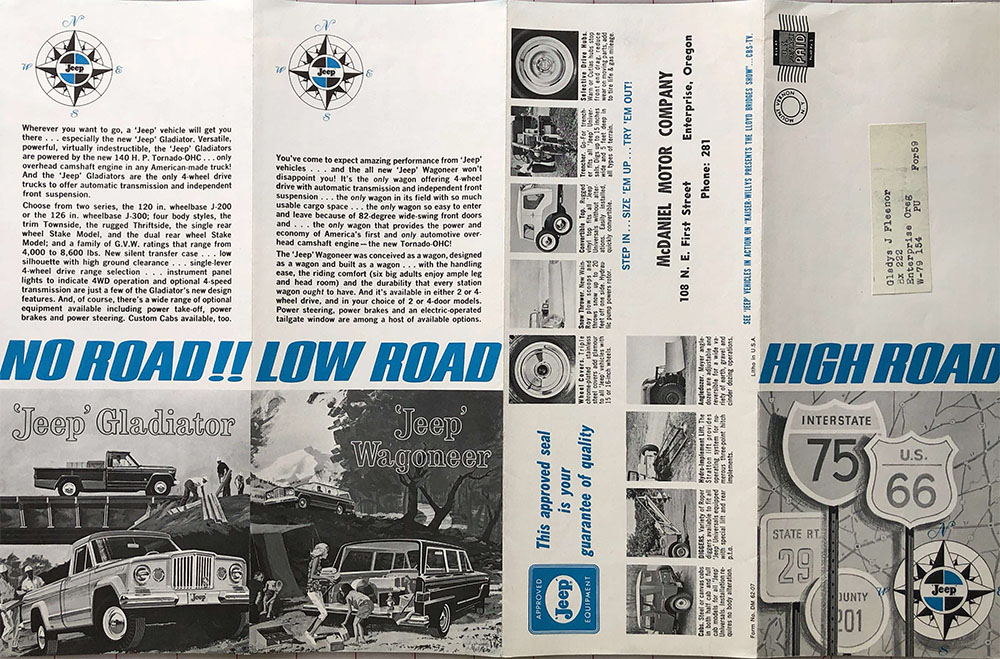 I like the full-layout image of the country and jeeps on this brochure. It’s form number is DM 62-07.