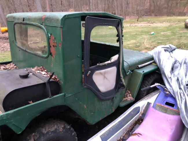 “Husbands 1948 Rare Army Jeep Willys CJ2 is taking up too much space in our garage. True “barn find” is all original including motor that currently doesn’t run. Frame is solid. Just don’t have the time for it and would love to see it go to a new home! No title.”