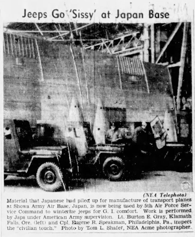 Originally Published September 18, 2013: According to the attached information, these jeeps were winterized with left over Japanese transport plane materials.