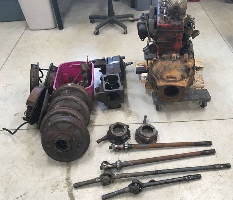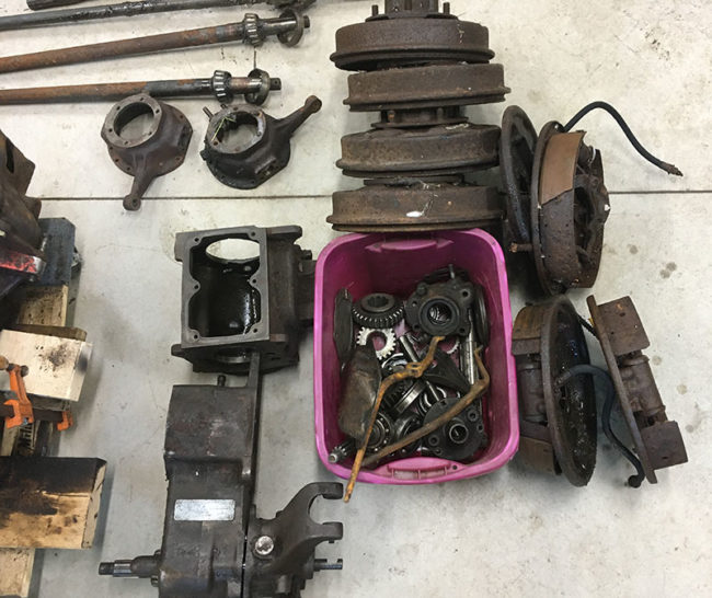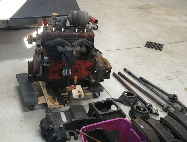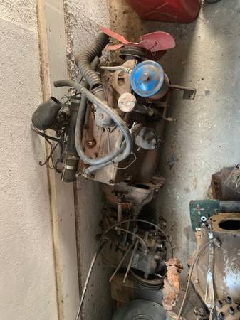 “Willys Cj parts L134 engine t-90 transmission Dana 18 transfer case turns over freely put out Of flat fender 5 years ago missing starter and alternator/generator $ 800.